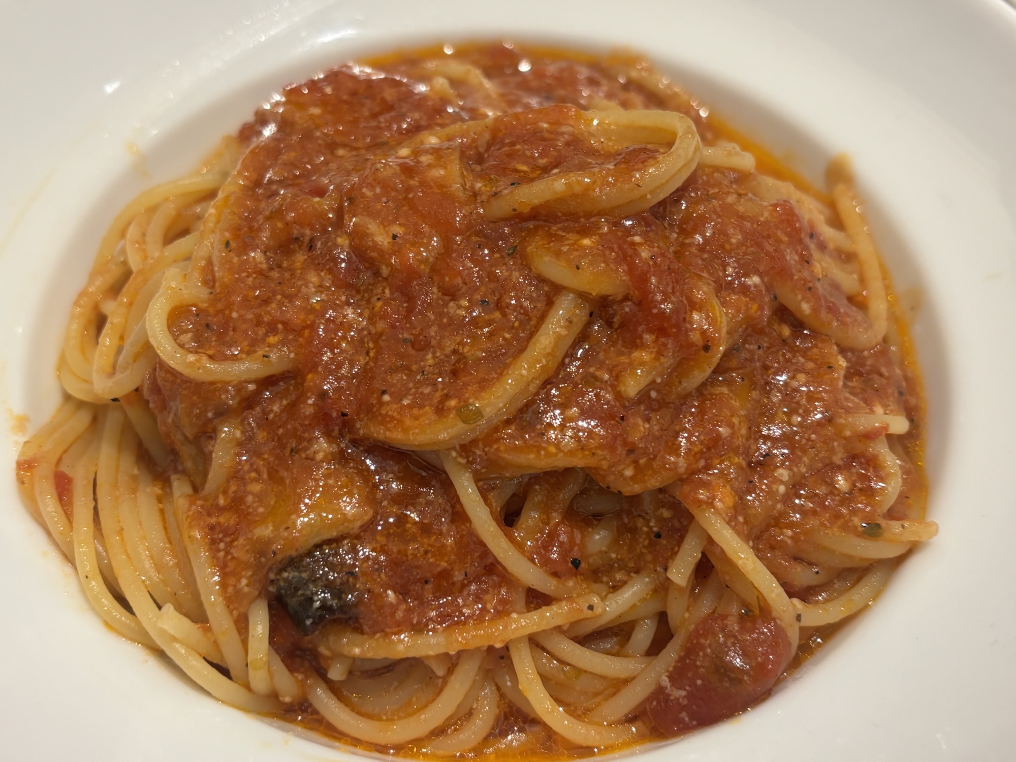あっさりとした中にコクがあり、コクがあるのに後味がしつこくないので、どんどんと食べられるスパゲティです。