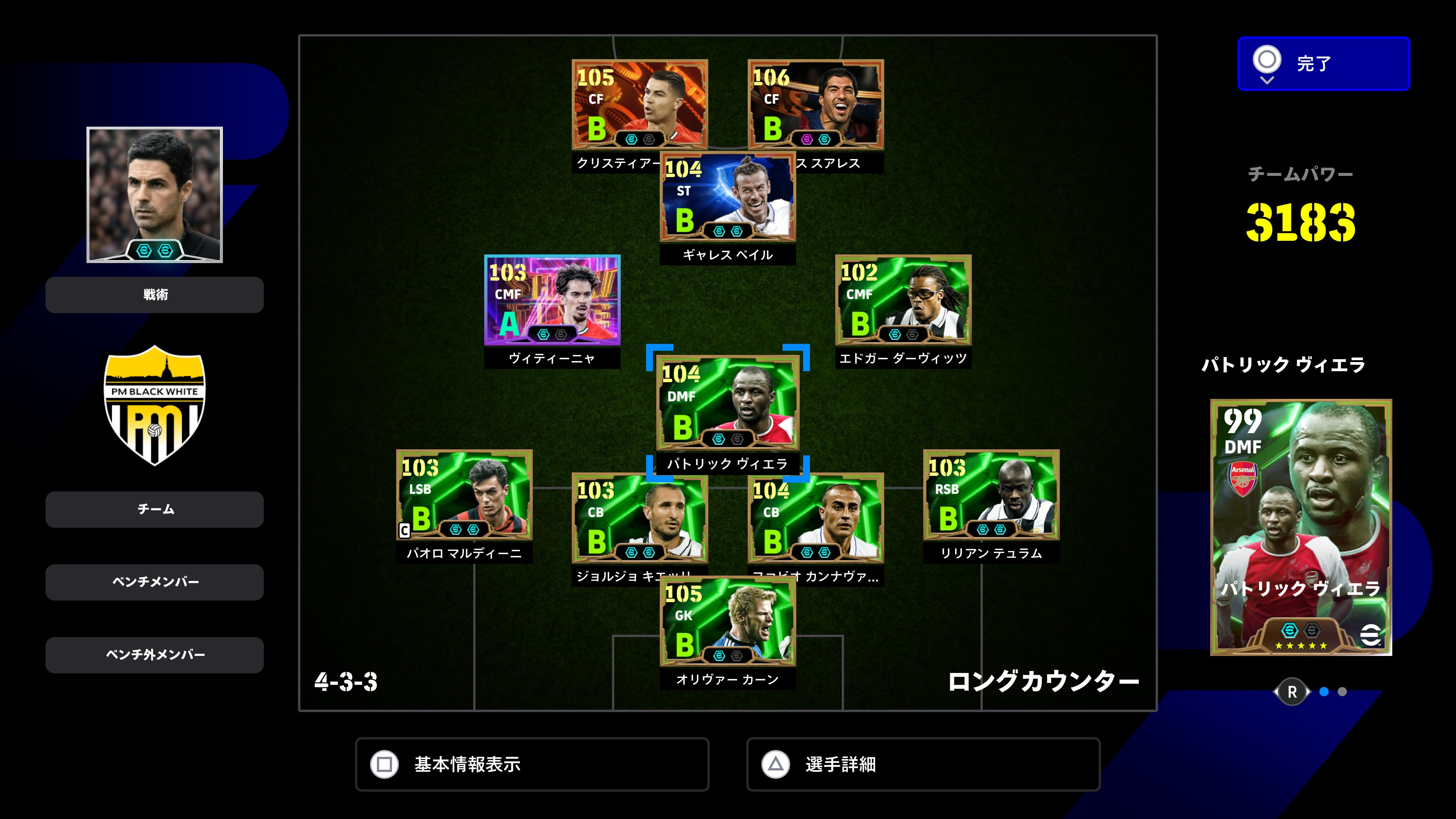 そして、キック力、決定力、カーブをほぼカンストさせて大砲育成させるのが楽しいのだが、それだったベイルでなくても別の選手で担えることも多い。