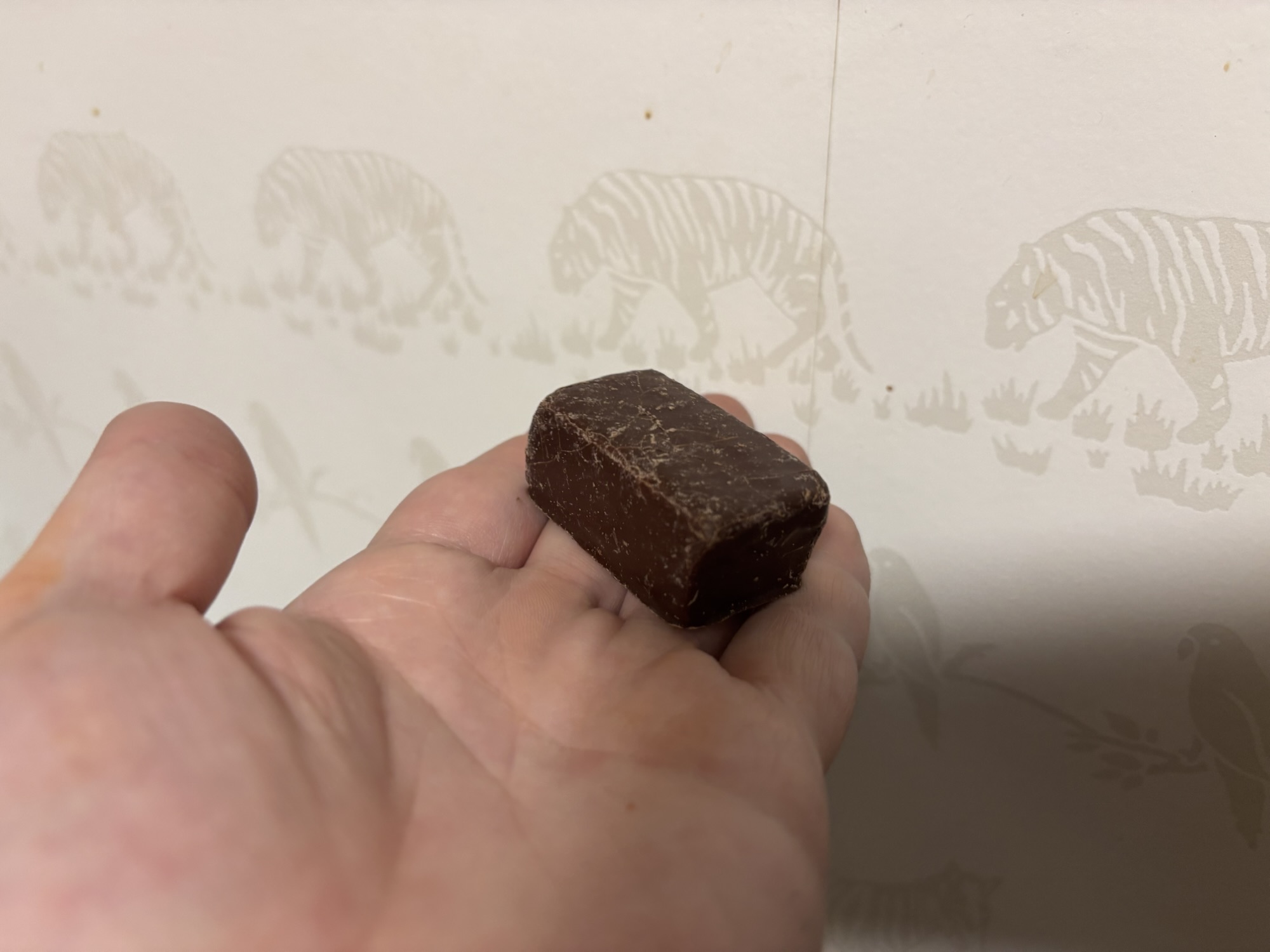 噛んでもおいしいけど、一番おいしいのは口の中でチョコレートをゆっくりとかす食べ方。