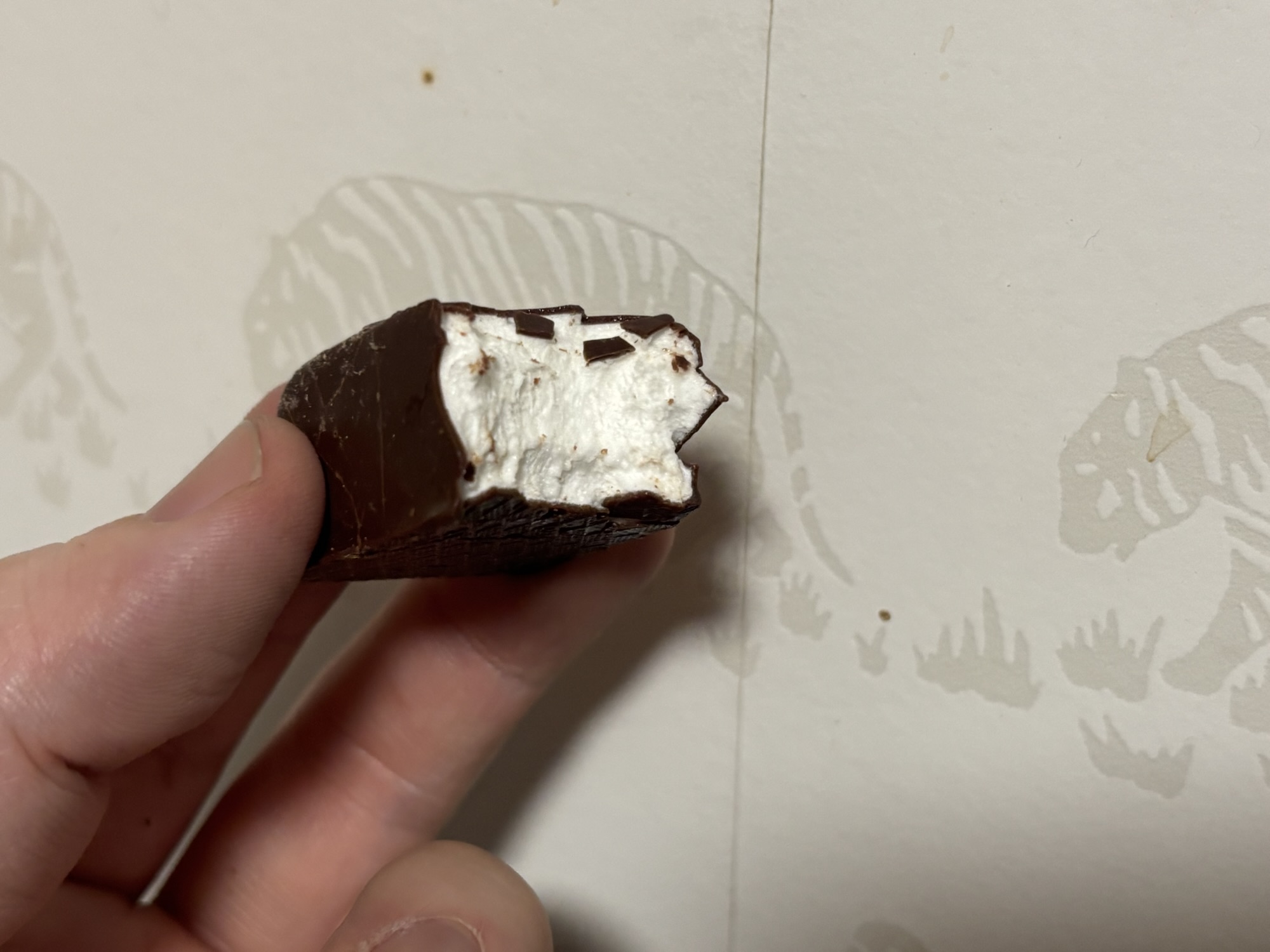 チョコレートの味が強すぎて、マシュマロ本来の味わいがちょっとわからない。甘いな…ぐらいで感想が止まる。