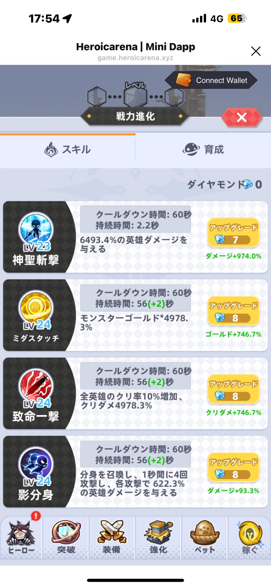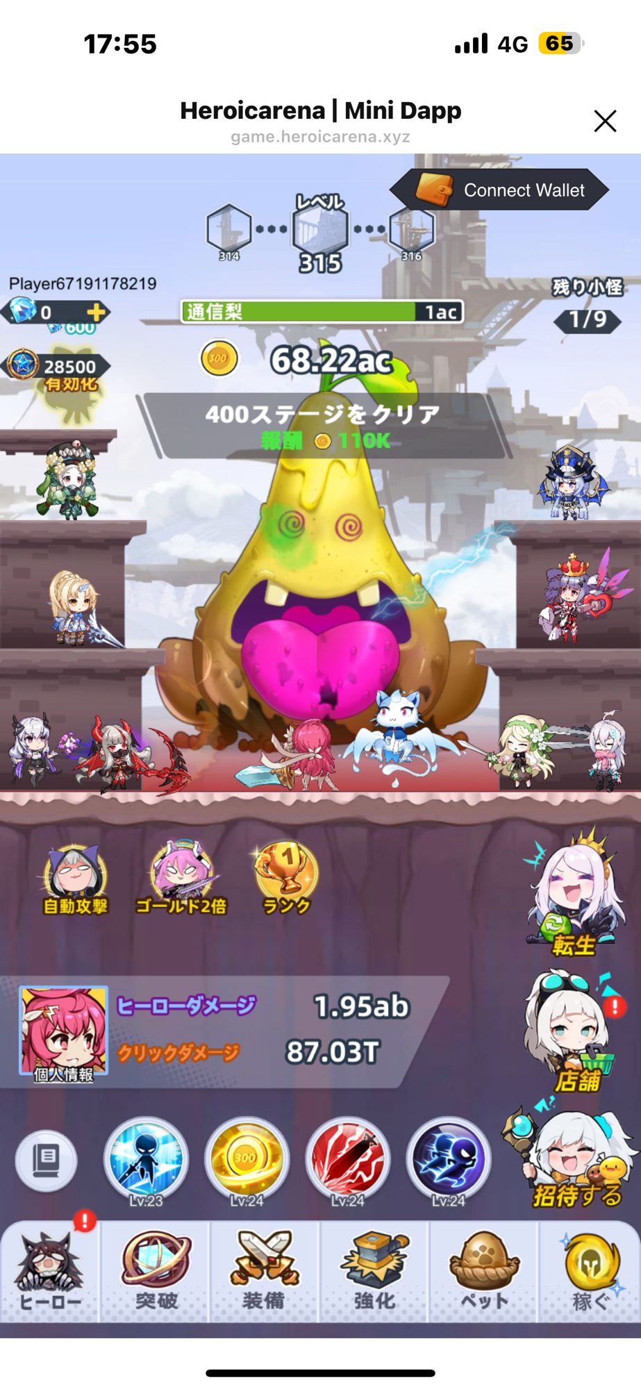 Heroic Arena(ヒロイックアリーナ)LINEDappのクリック×放置RPGが面白い 稼ぎ方と攻略について 無課金でも効率の良い成長を目指すために