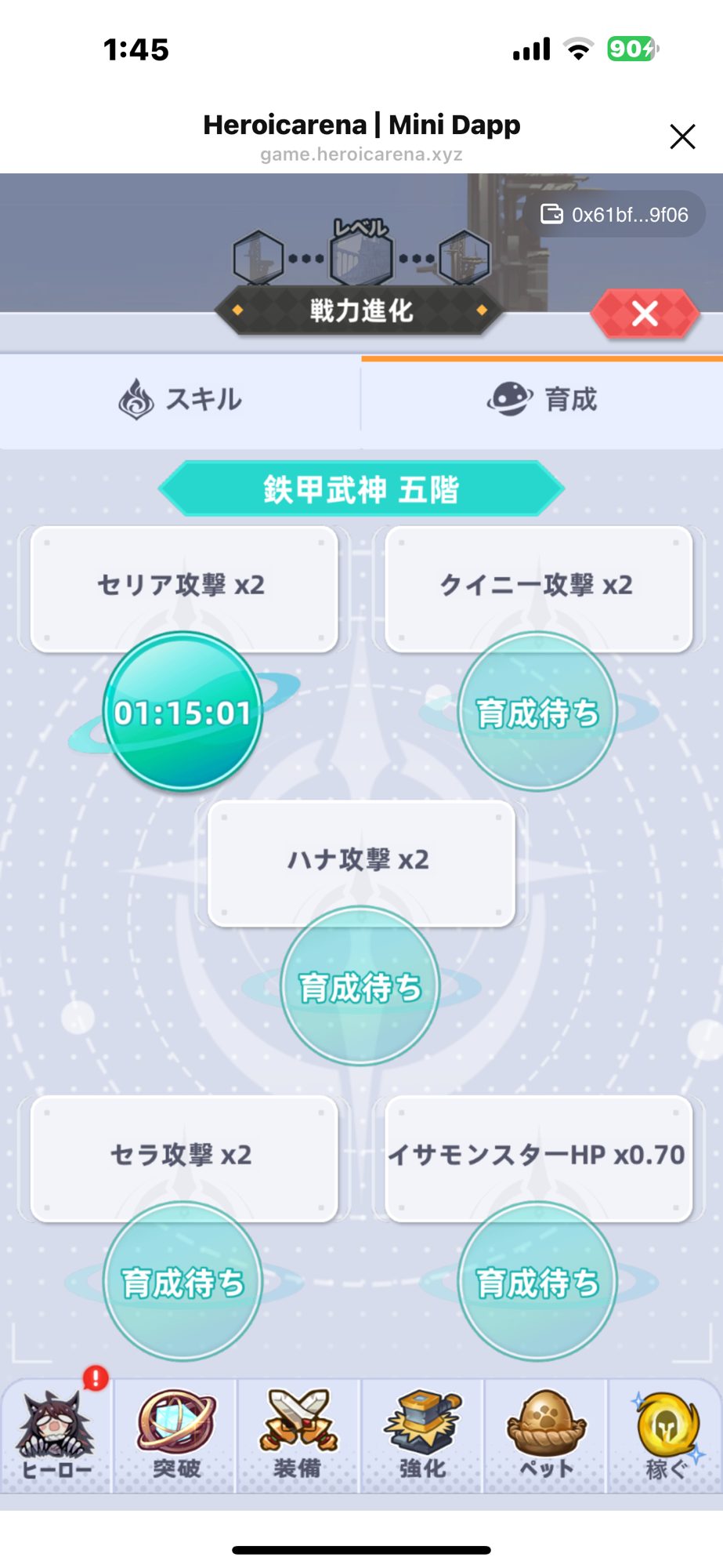Heroic Arena(ヒロイックアリーナ)は、育成が正義なので、どれだけ効率よく育てられるかが大切になります。