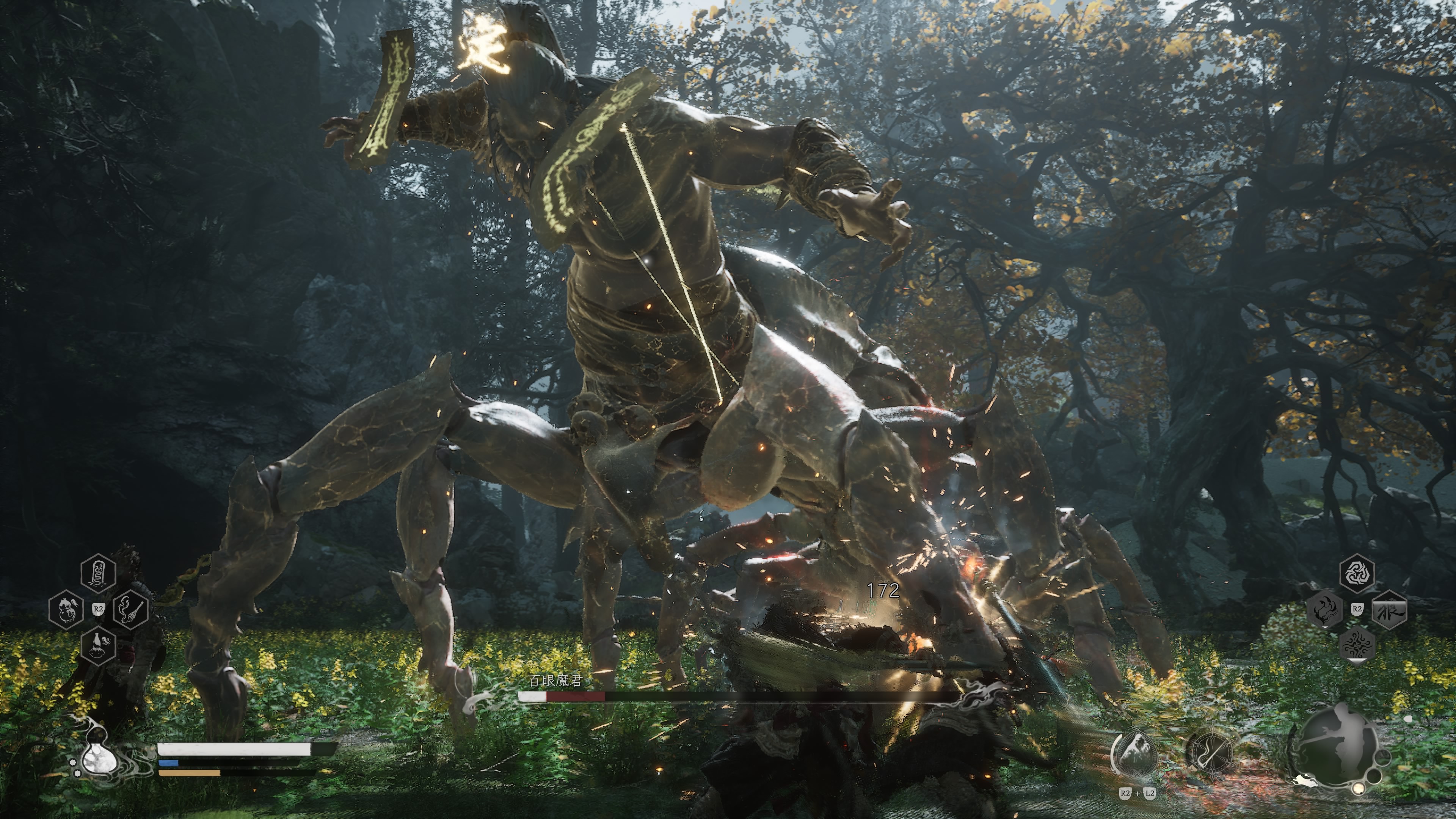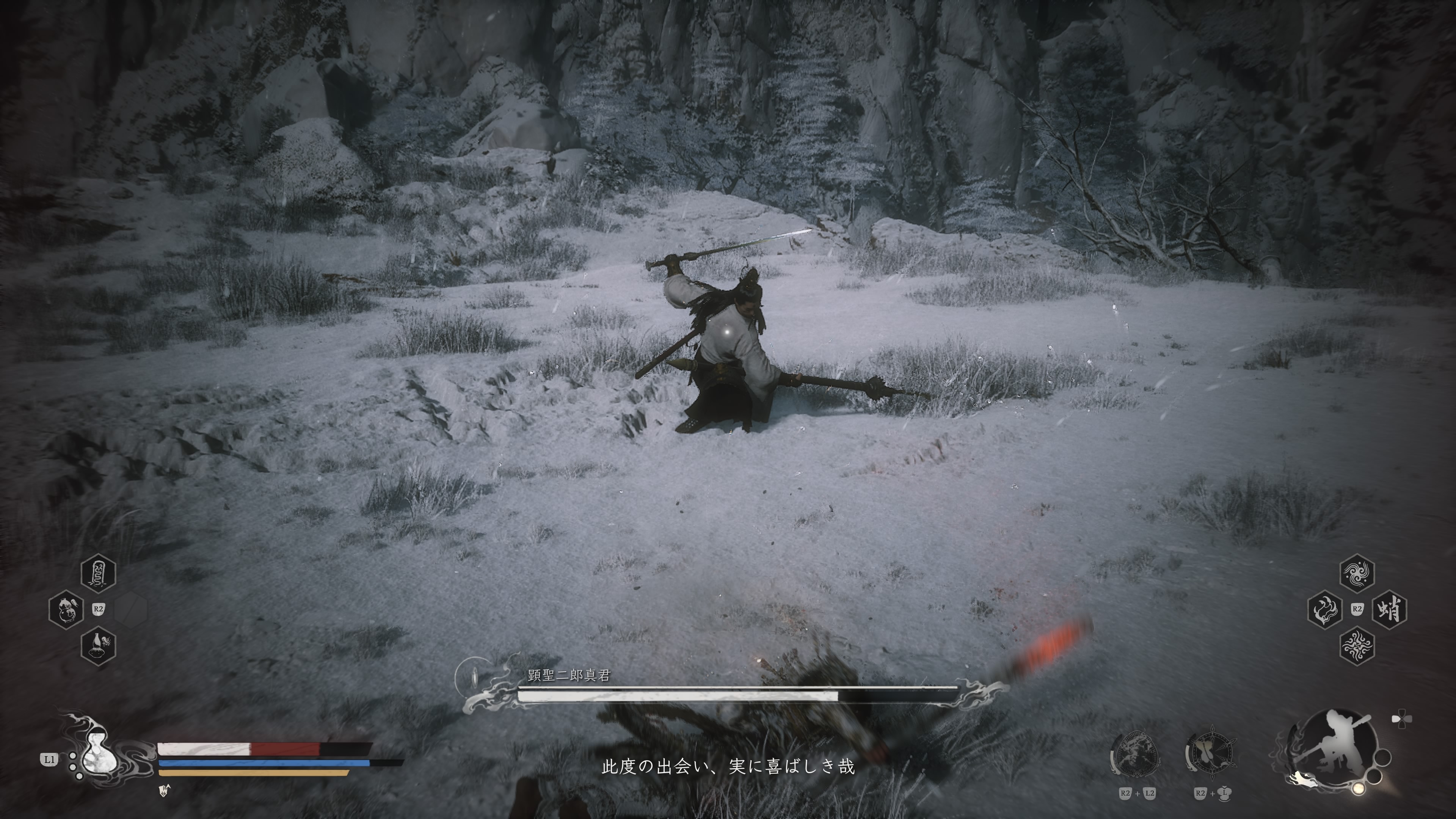 その実験として、ソウルライクのようにミニマップではなく、広大なマップを筋斗雲で駆け回るという遊びを見せつけてくれたのだろう。