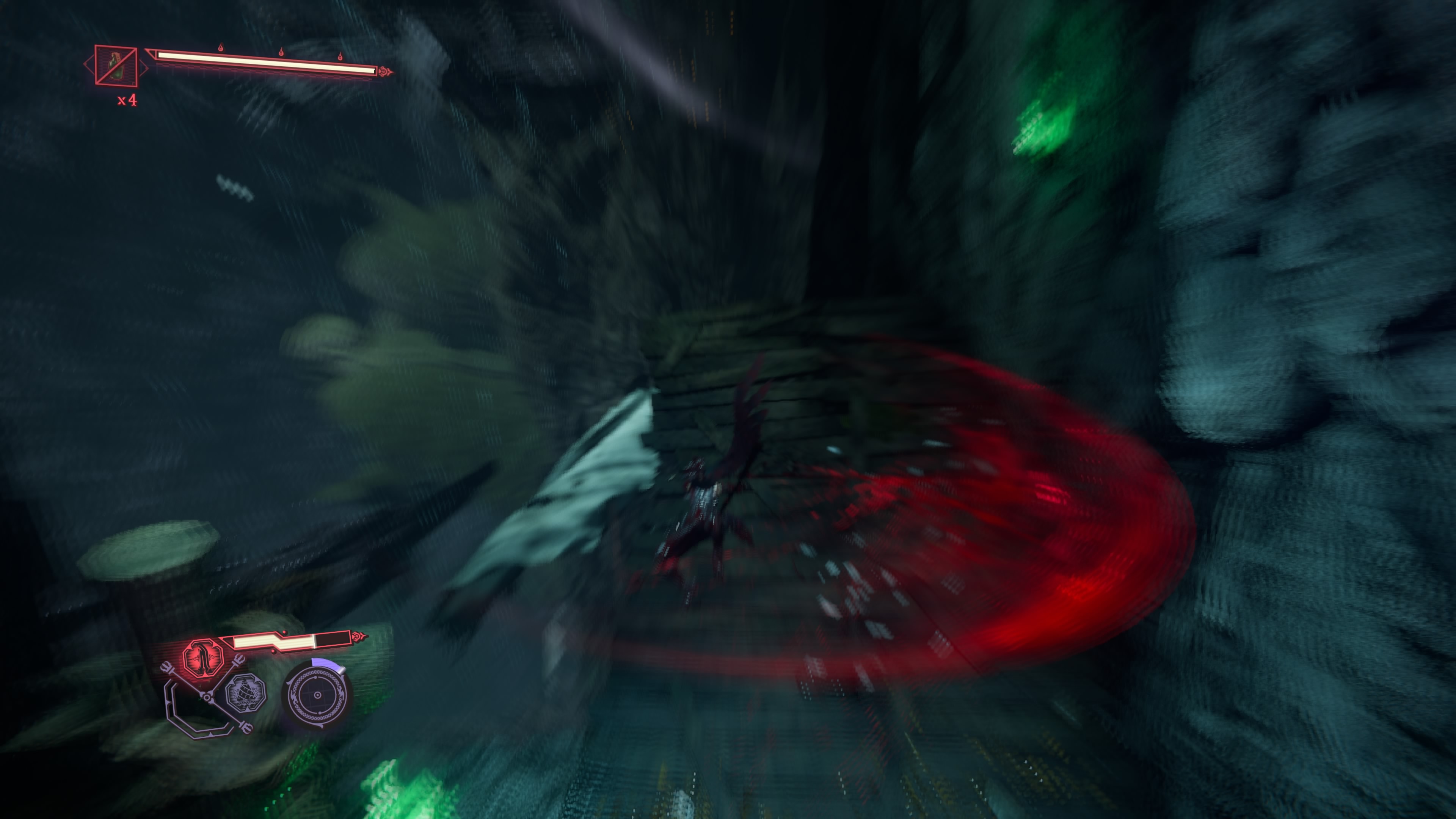 重要な要素として、ガードを固めているまたは光って強い攻撃を出そうとしている敵にあてることで、「崩撃」が発動する。いわゆるカウンターやパリィ状態。敵は崩れ落ちて、隙ができる。