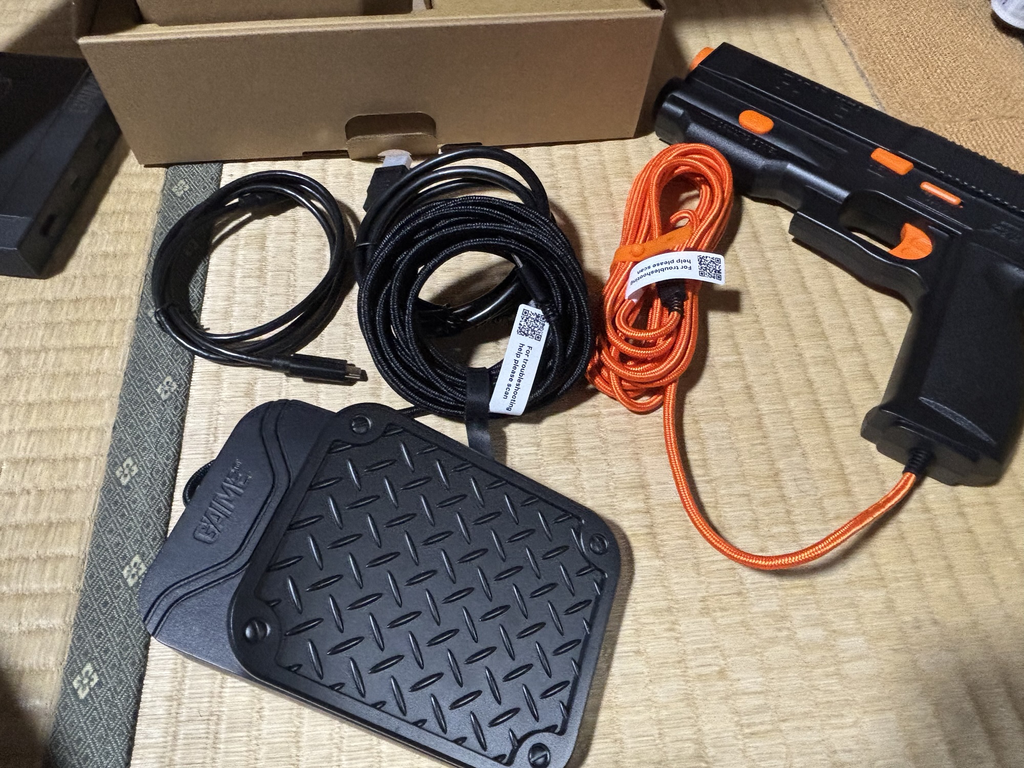 フットペダルとガンコンは断線しないように、強度が高く作られています。ガンコンに関しては理想は無線で動いてほしかったですが、安定性を求めた結果といえるでしょうか。