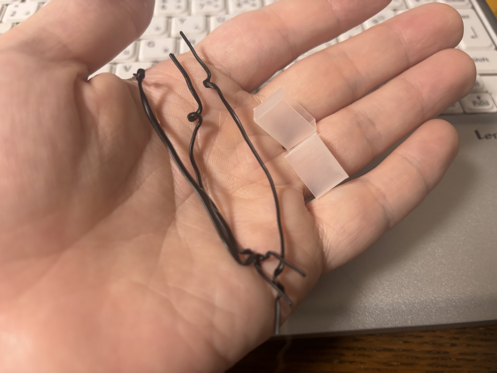 ケーブルは、留め具が電源ケーブルに2本(記憶が正しければ)、HDMIケーブルに1本使われており、HDMIケーブルの端子を守るための保護カバーも使われていました。