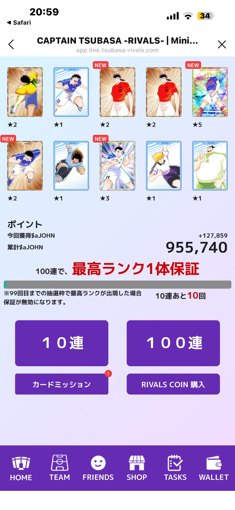 キャプテン翼RIVALS on LINE(ライン)版 実際にカードを引いてみた感想 確定演出はある?天井の重要な仕様